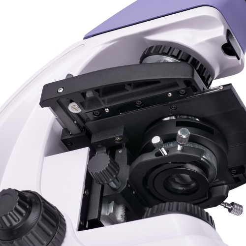 Отсутствие выдвижной рейки у предметного столика повышает комфорт работы, а коаксиальные рукоятки фокусировки позволяют легко и точно настраивать резкость. Механизм фокусировки отзывчивый и удобный, что уменьшает усилия при наведение на резкость, что делает работу с микроскопом более приятной.