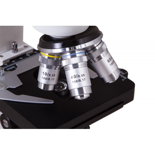 Предметный столик оборудован препаратоносителем и шкалой нониуса, что обеспечивает точность и удобство при работе с образцами. Это позволяет пользователю легко измерять и перемещать образцы во время наблюдения, улучшая общий опыт работы с микроскопом, будь то в рамках учебного процесса или любительских экспериментов.