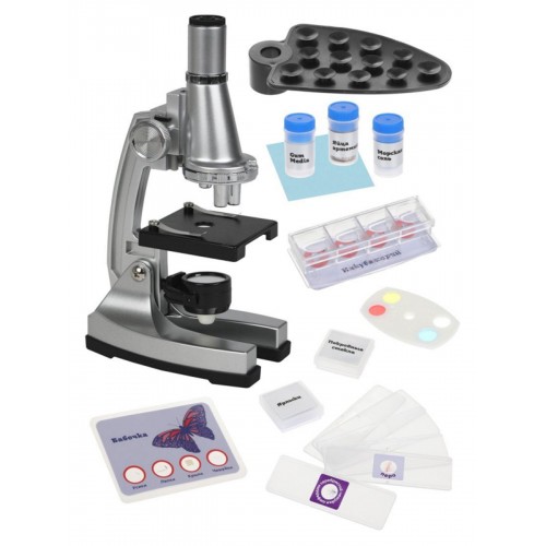 Кроме самого микроскопа, упаковка включает в себя множество дополнительных предметов, таких как слайды, покровные стекла и даже инкубатор для артемии. Это полный набор для первых научных открытий и исследований, который облегчит процесс изучения.