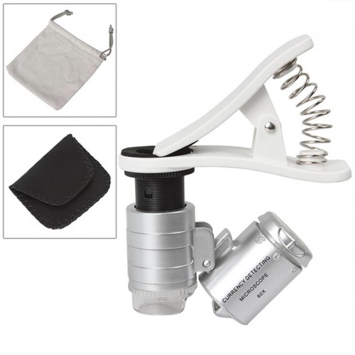 Микроскоп Kromatech 60x мини, с креплением для смартфона, подсветкой (2 LED) и ультрафиолетом (9882-W)