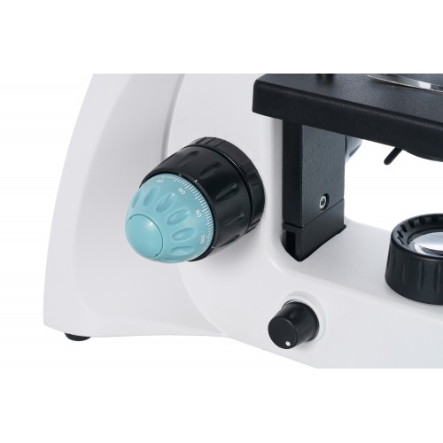 Нижняя галогенная подсветка с возможностью регулировки яркости создает оптимальные условия для наблюдения за образцами. Возможность настройки освещения позволяет избежать бликов и получить четкую картинку даже на самых темных участках микропрепарата.
