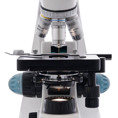 Оборудованный механическим двухслойным предметным столиком с препаратоводителем, микроскоп обеспечивает легкое размещение образцов. Это значительно упрощает процесс подготовки и манипуляции с слайдами. Модель подходит как для опытных пользователей, так и для начинающих, благодаря интуитивно понятным настройкам и управлению.