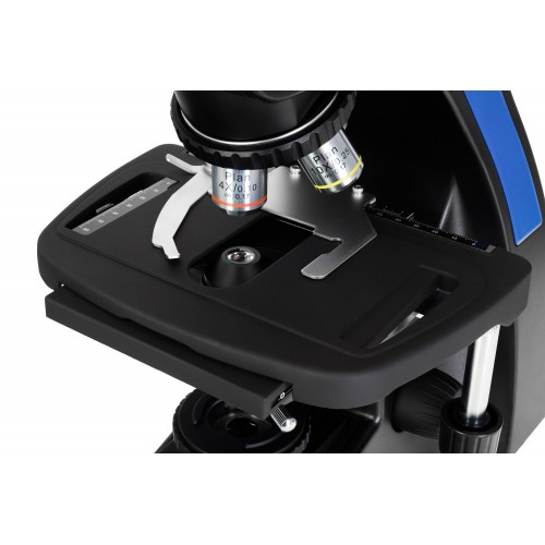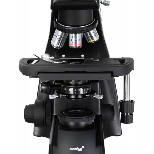 Предметный столик конструктивно улучшен для повышения плавности перемещения без рывков, а наличие держателей для образцов значительно упрощает работу. Пользователь может легко и быстро менять слайды, не отвлекаясь от процесса наблюдения.