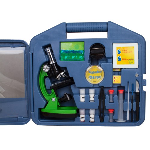 В комплект к микроскопу входят все необходимые аксессуары, включая кейс для хранения. Такой подход делает устройство практичным в использовании. Дети смогут не только проводить эксперименты дома, но и брать с собой на улицу или в поездки, что значительно расширяет их возможности для изучения.