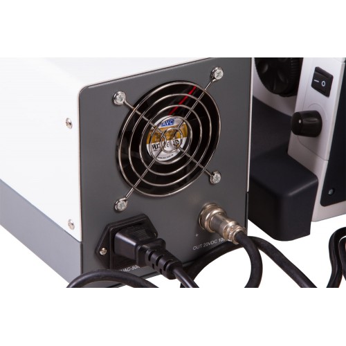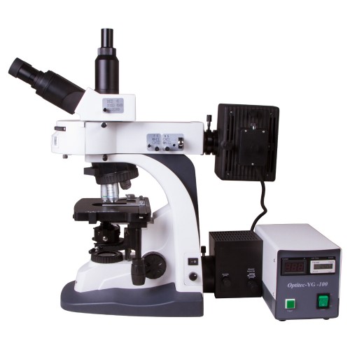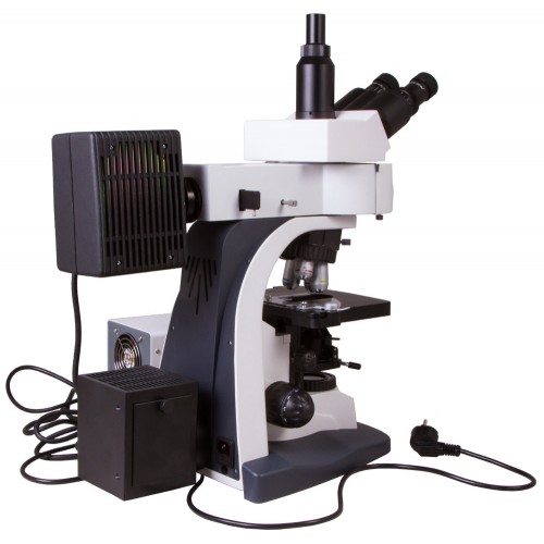 Прибор оснащен галогенной лампой, обладающей достаточной мощностью для яркой подсветки объектов под микроскопом. Система освещения включает как традиционное освещение, так и элементы для флуоресцентного анализа, что делает его универсальным инструментом для различных исследований в лаборатории. Это значительно повышает его ценность для профессионалов, работающих в сложных условиях.