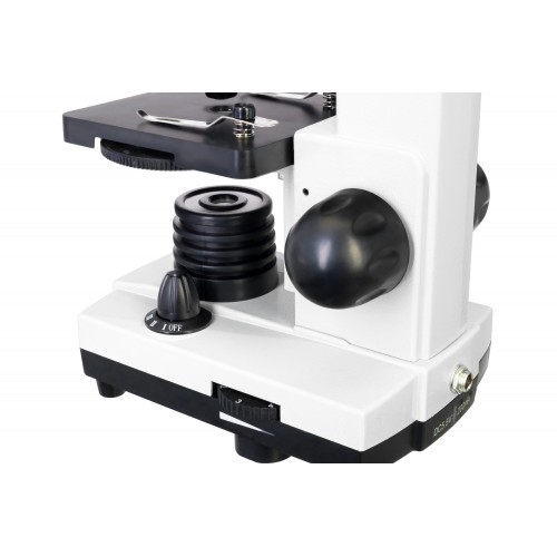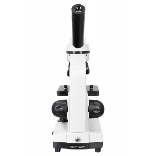 Корпус микроскопа изготовлен из легкого и прочного пластика, что делает его удобным в использовании и транспортировке. Наклоненная на 45 градусов окулярная насадка обеспечивает комфорт при длительных исследованиях. Благодаря наличию различных источников питания, работать с микроскопом можно как от сети, так и от батареек, что делает его универсальным инструментом для исследователей.