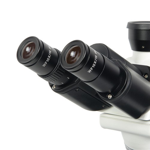 Этот микроскоп оснащен тринокулярной насадкой, что позволяет не только вести наблюдения через бинокулярный визуальный узел, но и устанавливать цифровую камеру для документирования результатов исследований. Наклон насадки делает процесс работы более комфортным, особенно при длительных наблюдениях, снижая утомляемость глаз и шеи.