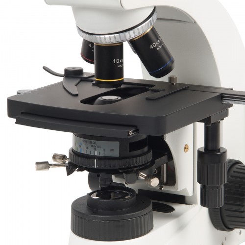 Окуляры с широким полем зрения и ахроматические объективы, скорректированные на бесконечность, обеспечивают четкое и контрастное изображение. Прибор способен увеличивать объекты в диапазоне от 40x до 1000x, что делает его универсальным инструментом для проведения различных исследований.