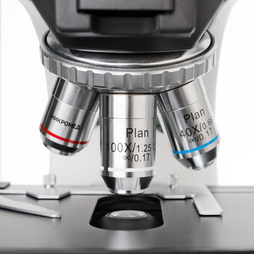 Микроскоп комплектуется пятью планахроматическими объективами, которые обеспечивают широкий диапазон увеличений от 40 до 1000 крат. Это позволяет исследовать различные образцы на разных стадиях, обеспечивая отличную чёткость изображения. Каждую линзу можно легко сменять для достижения необходимого уровня детализации.