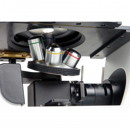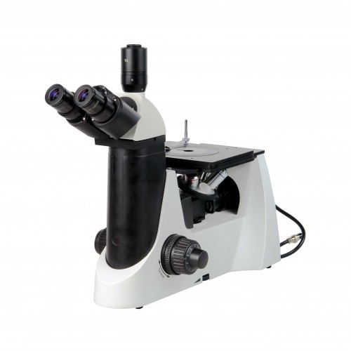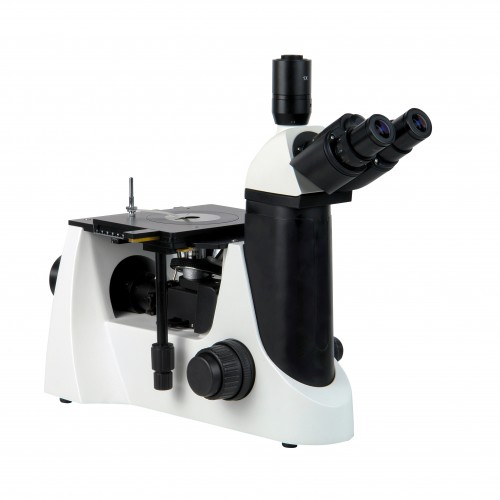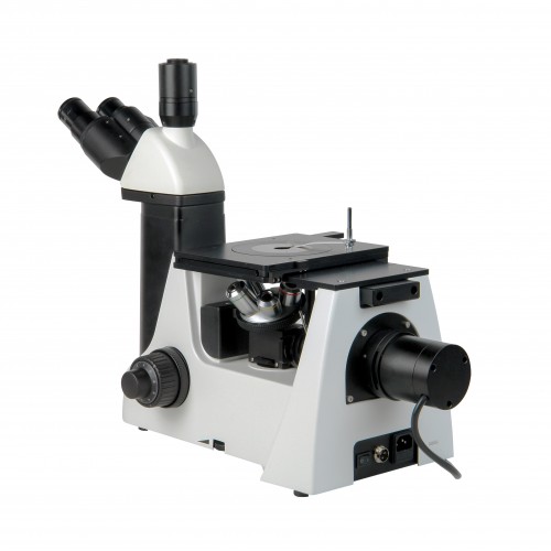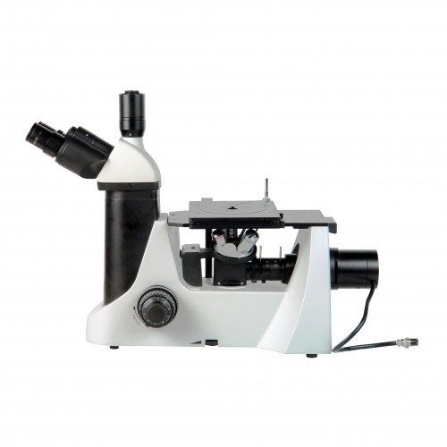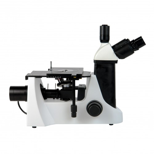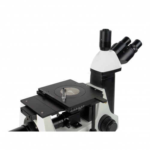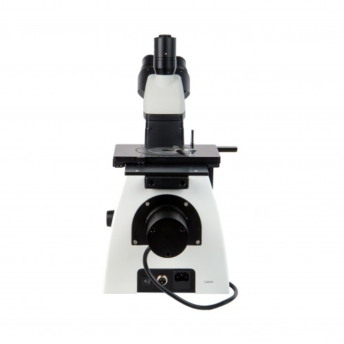 Конструкция микроскопа предусматривает инвертированный дизайн, что делает его удобным для работы с крупными образцами. Размещение предметного столика над объективами помогает избежать риска повреждения образцов. Это решение особенно востребовано в металлографии и полимерных исследованиях, где требуется высокая точность работы.
