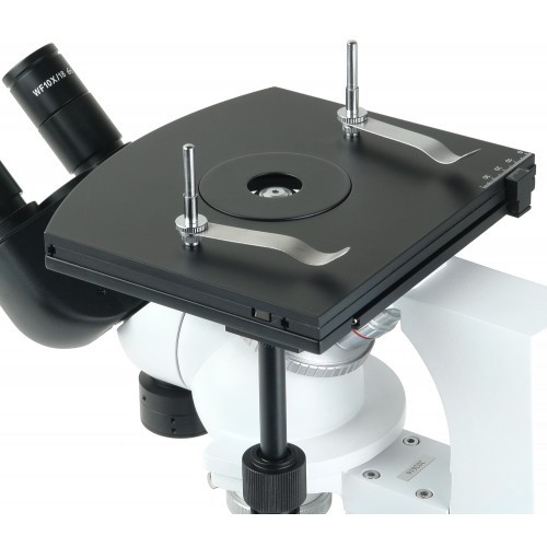 Устройство имеет удобные размеры и компактную конструкцию, что делает его легким в транспортировке и размещении в лаборатории. Микроскоп также поддерживает работу с крупными образцами благодаря инвертированной конструкции, что позволяет использовать его в различных условиях. Эта особенность дает явное преимущество пользователям, которые часто работают с тяжелыми и крупногабаритными материалами.