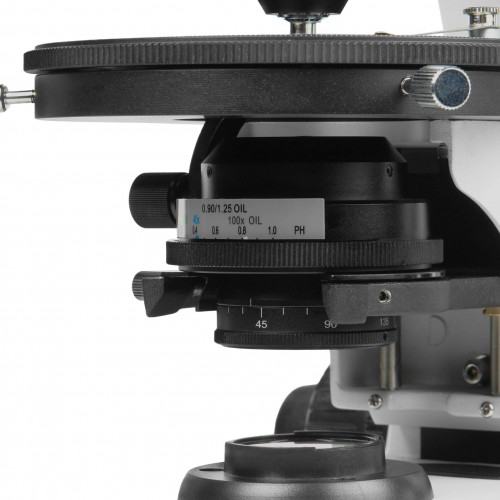 Микроскоп оснащен усовершенствованным конденсором, который обеспечивает яркое и равномерное освещение образцов. Возможность работы как в поляризованном, так и в обычном свете расширяет горизонты применения, позволяя получать высококачественные изображения независимо от типа исследуемого материала.