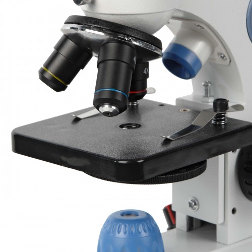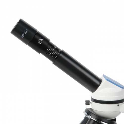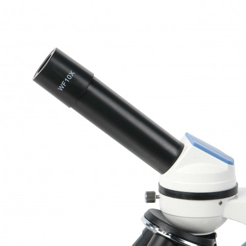 Все объективы данного микроскопа парфокальны, что упрощает процесс смены увеличений без необходимости повторной настройки фокуса. Комфортное использование также обеспечивается наклонной визуальной насадкой, что делает наблюдение менее утомительным и более безопасным для глаз. Особенно это важно, когда наблюдения проводятся в группах, так как конструкция позволяет легко перемещать прибор.