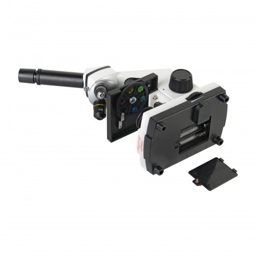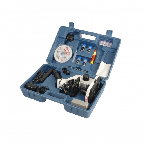 Этот микроскоп является универсальным решением для школьных лабораторий. Он позволяет легко переключаться между оптическим и цифровым режимами благодаря видеоокуляру, который можно быстро установить вместо стандартного окуляра. Это свойство делает устройство удобным как для теоретических занятий, так и для практических исследований на месте.
