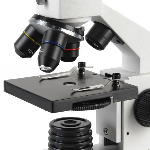 Предоставляя четкие и детализированные изображения, данный микроскоп комплектуется высококачественными ахроматическими объективами с просветляющим покрытием. Это не только усиливает контрастность, но и способствует получению отчетливых изображений при различных увеличениях, что очень важно для выполнения лабораторных задач.