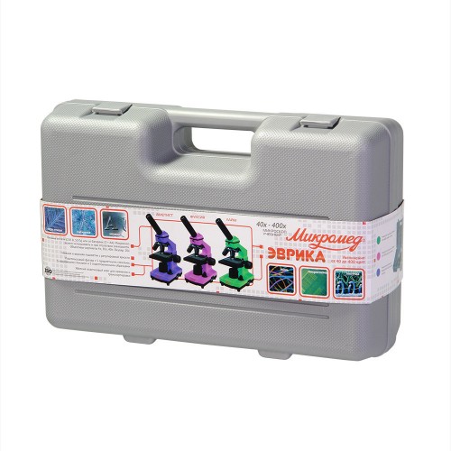 Характеристики Микроскоп школьный Микромед Эврика 40х-400х в кейсе (лайм)
