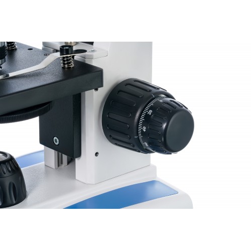 Микроскоп оснащен комбинированной светодиодной подсветкой, яркость которой можно регулировать. Подсветка расположена как над, так и под образцом, что позволяет добиться наилучших условий для наблюдения. Конденсор с диском диафрагм обеспечивает более точную настройку освещения, улучшая качество изображения.