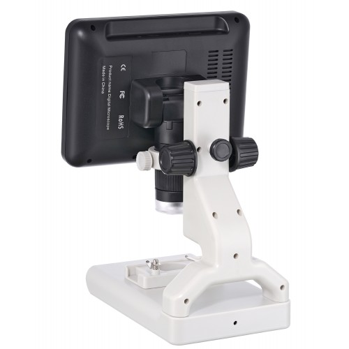 Данный микроскоп оснащен большим 7-дюймовым цветным ЖК-экраном, который позволяет легко наблюдать за образцами. Экран обеспечивает высокую контрастность и детали изображения, что значительно упрощает процесс исследования. При этом возможность наклона экрана добавляет гибкости в использовании, позволяя находить наиболее удобный угол для наблюдения.