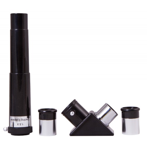 Телескоп поставляется с полным набором необходимых аксессуаров, что позволяет начать наблюдения сразу после распаковки. В комплекте имеются оборачивающий окуляр и диагональное зеркало, обеспечивающие удобство при наблюдениях как в космосе, так и на Земле.