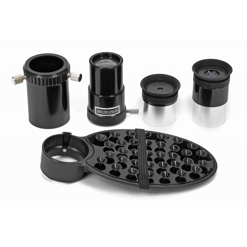 В упаковке представлены все необходимые аксессуары, включая два различных окуляра для удовлетворения разных потребностей при наблюдениях. Окуляр на 20 мм идеально подходит для поисков объектов, в то время как 4 мм окуляр раскрывает детали астрономических явлений, позволяя осуществлять увеличение в 250 раз.
