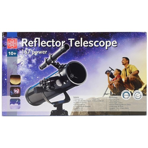 Этот телескоп предоставляет возможность наблюдения за Луной и другими яркими астрономическими объектами. Оптическая схема в виде классического рефлектора обеспечивает хорошие характеристики изображения, что позволяет детям более глубоко погрузиться в изучение космоса. Такие возможности делают EDU-TOYS 167x не только интересным, но и образовательным прибором.