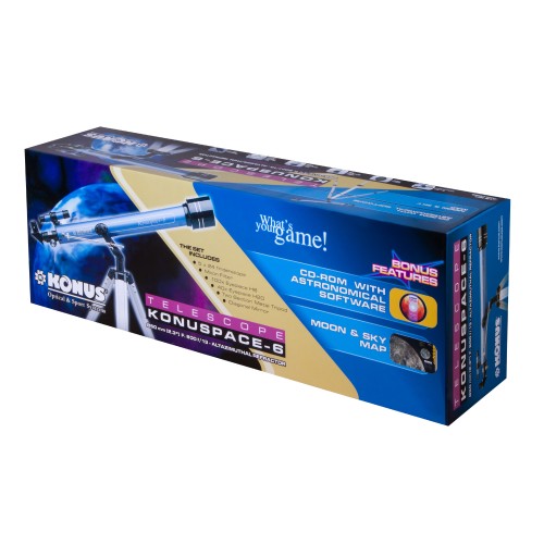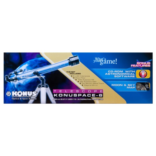 Телескоп Konus Konuspace-6 60/800 AZ представляет собой идеальное решение для тех, кто только начинает свои астрономические наблюдения. Этот прибор отлично подойдет как детям, так и любителям астрономии, которые ищут удобный и доступный инструмент для знакомства с ночным небом и окружающим миром.
