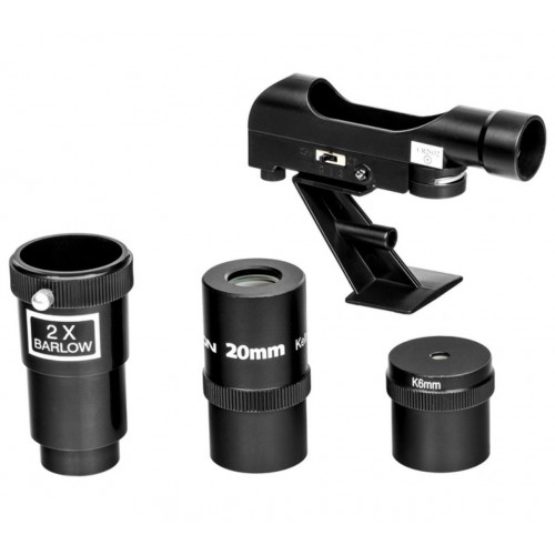 Комплект включает два окуляра разных увеличений, что позволяет выбирать оптимальные условия для наблюдений. Это даст возможность исследовать объекты как в широком поле, так и с большим увеличением, что расширяет возможности телескопа.