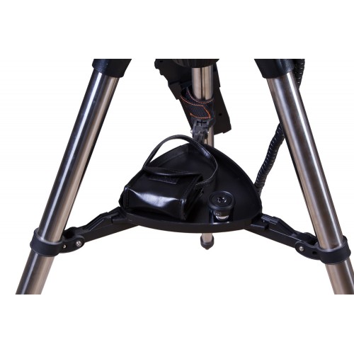 Телескоп установлен на прочный и регулируемый штатив, который обеспечивает стабильность во время наблюдений. Удобная полочка для аксессуаров и возможность регулировки высоты делают работу с телескопом комфортной, позволяя использовать его людям разных ростов. Такая конструкция способствует более приятному процессу наблюдения.