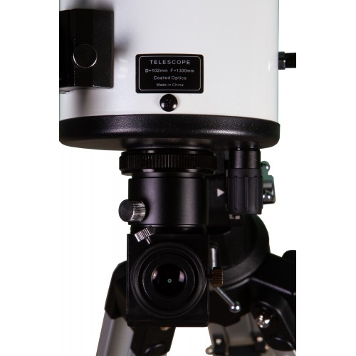 Алюминиевая тренога с возможностью регулировки высоты позволяет удобно настроить телескоп под любые условия наблюдений. Это позволяет пользователю выбирать оптимальное положение для комфорта, независимо от места установки. Наличие лотка для аксессуаров делает наблюдения ещё более удобными, удерживая все необходимые принадлежности под рукой.