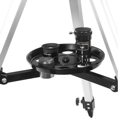 В комплекте с телескопом идут два окуляра, которые позволяют изменять увеличение до 120 крат, что даёт возможность внимательно изучать как крупные объекты, так и детали малых небесных тел. Линза Барлоу в три раза увеличивает кратность, что открывает дополнительные горизонты для наблюдений и делает каждую сессию наблюдений более увлекательной.