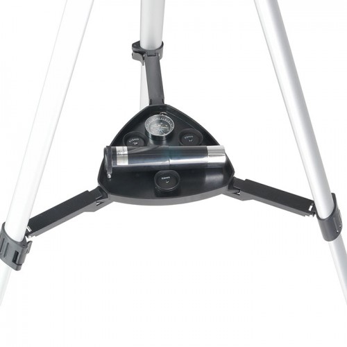 Штатив телескопа регулируется по высоте, что позволяет вести наблюдения как стоя, так и сидя. Максимальная высота в 110 см делает его удобным для большинства пользователей, обеспечивая комфортный доступ к окуляру. Возможность установки на минимальную высоту 60 см открывает дополнительные варианты для различных позиций во время наблюдений, что важно для длительных сессий.