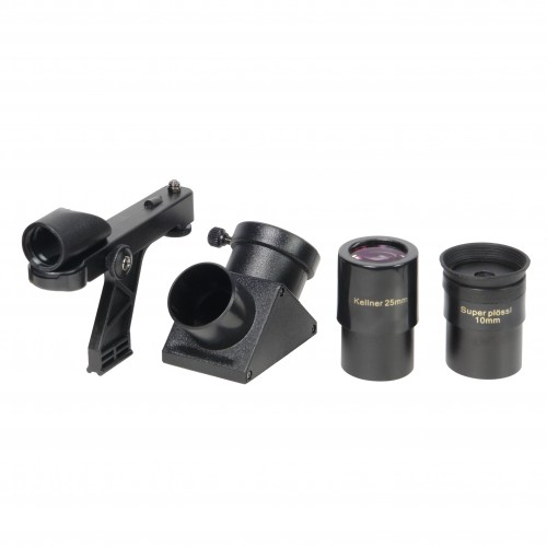 В комплект входят окуляры с просветленной оптикой, а угловая призма 90º делает наблюдения более удобными. Вы сможете легко менять окуляры для достижения различной кратности увеличения, что увеличивает универсальность телескопа.