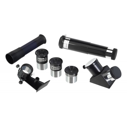 В комплект включены три различных окуляра, что предоставляет гибкость в выборе увеличения. Окуляры с различными фокусными расстояниями позволят каждому пользователю выбрать оптимальный вариант в зависимости от поставленной задачи. Комплектация также предусматривает дополнительные аксессуары, что расширяет возможности телескопа.
