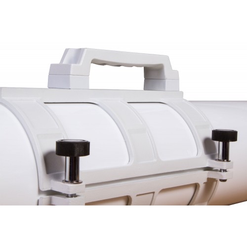 Крепежные кольца с ручкой удобно удерживают трубу и позволяют легко переносить ее с места на место. Дополнительный держатель для фотокамеры с резьбой 1/4 дюйма дает возможность делать качественные астрономические снимки, что значительно расширяет возможности для астрофотографии.