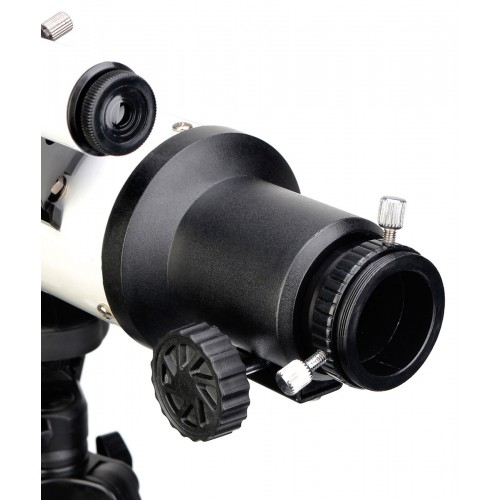 В комплекте с телескопом идут все необходимые для начала наблюдений аксессуары, такие как окуляр с фокусным расстоянием 20 мм и оборачивающая призма. Это делает устройство готовым к использованию сразу после распаковки, что позволяет избежать длительной настройки. Оптический искатель, входящий в комплект, упрощает процесс поиска объектов на ночном небе.